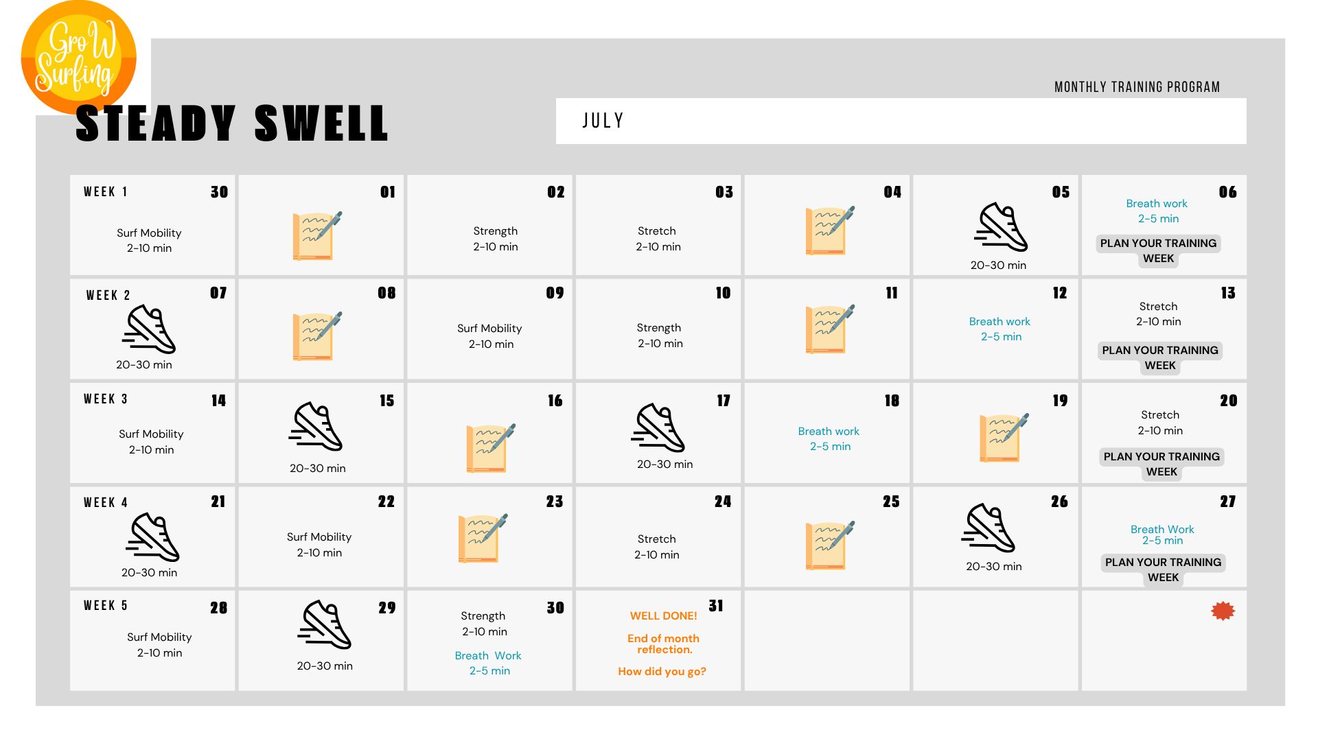 If you need exercise inspiration you can find all the tag-along training videos for surf mobility, strength, breath work and stretch on the membership site.